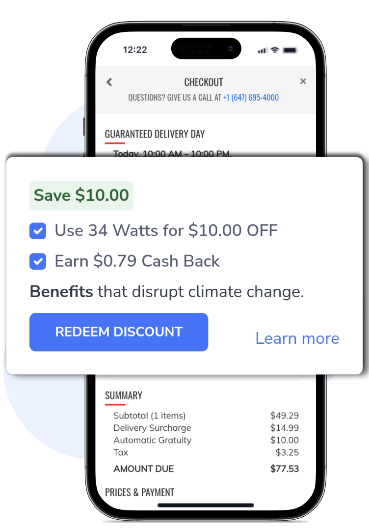 Use this option to apply Watts at checkout to unlock discounts and earn Cash Back on exclusive products and services—then simply pay the rest with money.